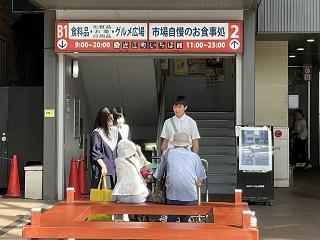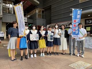 7月18日(火)武蔵が辻・近江町市場バス停付近で、夏の交通安全県民運動に伴う高齢者等への夜光反射材啓発キャンペーン(シルバーピカリハット事業)に参加しました。