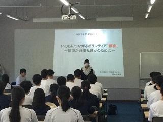 協議会では、県赤十字血液センターの方を講師に迎え、献血についてお話していただきました。