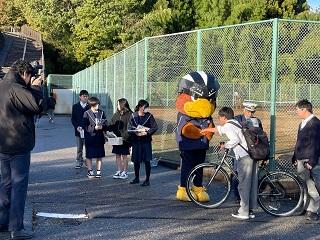 11月14日(火) の登校時間に石川県警の方と自転車マナーアップキャンペーンを行ないました。