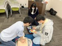 他校のJRC部員とともに、救護ボランティアに必要な知識や技術の習得、赤十字ボランティアとしての自覚と意識を高めるため、講義や演習に参加しました。
