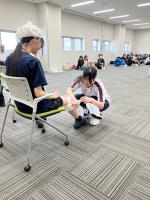 練習の時のようにできずに悔しい思いをした部員もいましたが、部員全員がただ手当てをするのではなく、ケガ人に不安を与えないように手当てをすることができます。額と膝の手当ては、JRC部員にお任せください!