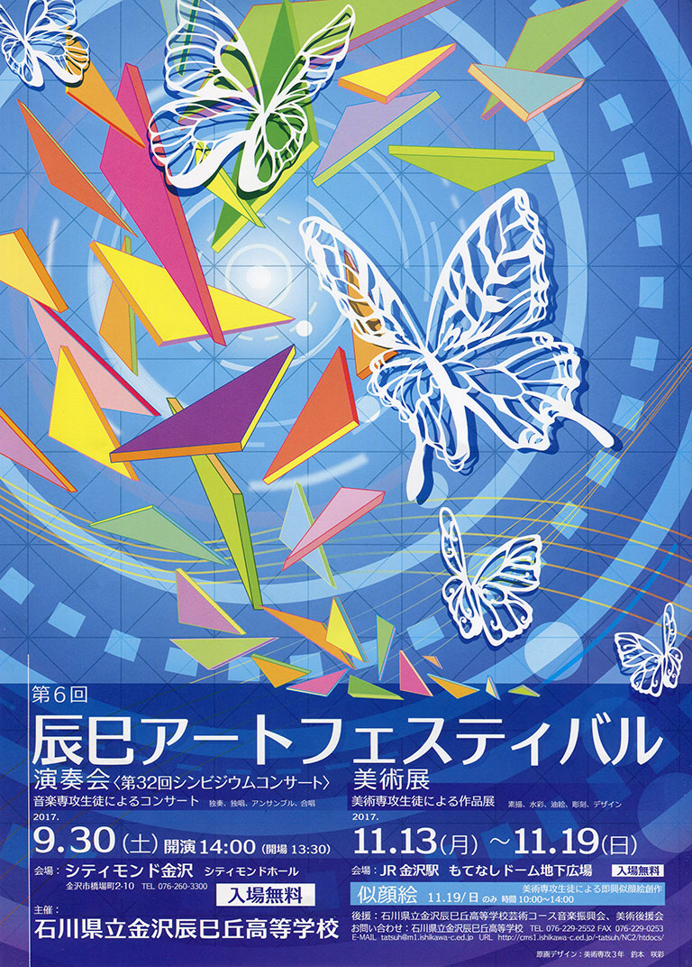 生徒の安全を考え、30日(日)に開催します辰巳アートフェスティバルシンビジウムコンサートおよび美術作品展・似顔絵コーナーの開催時間を下記のように変更いたします。当日、ご来場を予定されていました皆様にはご迷惑をおかけしますがよろしくお願いいたします。