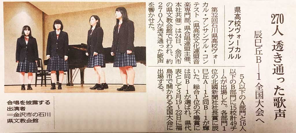 金沢情報3/14号に「キラリ★いしかわ人/石川県立金沢辰巳丘高等学校合唱部」として紹介されました。