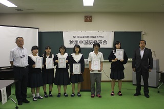 今回の発表会は、生徒にとって本格的な外国語プレゼンテーションのスタートラインです。2学期福井県で行われる北陸地区中国語発表会に入選することができるよう、これからも発音や表現力を磨き、なお一層の努力を期待します。