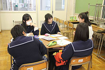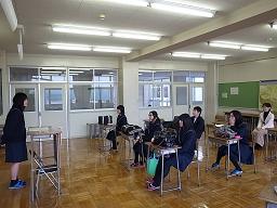 本校は、県内で唯一中国語を学べ、上限12単位を履修できる高校として、近年中国語に興味関心がある生徒が入学しています。授業体験では、生徒が発音の基礎や自己紹介等を体験しました。部活動体験では、文化祭の紙芝居の練習風景を見た後、年間行事を確認しました。体験後、中国のお茶や飴等を堪能し、忘れられない経験になったのではないかと思います。