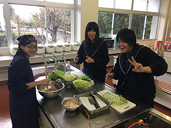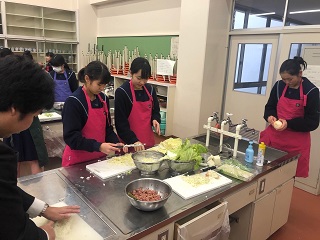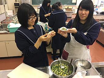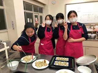 11月20日、本校調理室で餃子作りを体験しました。
