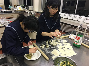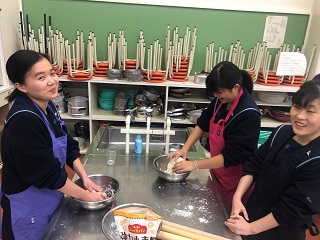 12月6日、本校調理室で皮から手作りする水餃子作りを体験しました。
