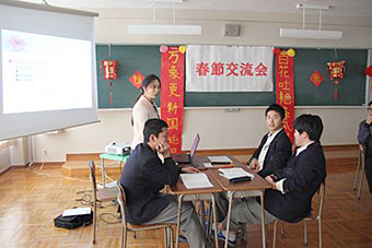 2月10日、金沢辰巳丘高校の教室では、中国出身の石川県国際交流員蘆冬麗さんが春節の歴史と現在、行事様子等を教えてくれました。また、北陸大学の留学生との歓談も交えて、盛大に春節交流会を行いました。