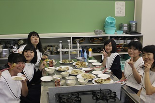 6月8日、本校調理室で11名の生徒が餃子作り体験をしました。