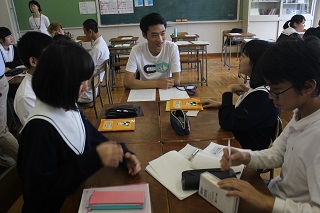 その後、本校教員が現代社会において中国語学ぶことの大切さなどを話しました。生徒たちは生き生きした目線で留学生から中国語を学んでいました。