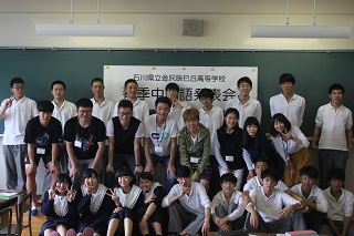 まだまだ未熟ですが、日頃の学びの成果を一生懸命披露しました。発表会後、北陸大学の留学生と交流活動をしました。若い世代の興味関心のある話題で会場は盛り上がっていました。