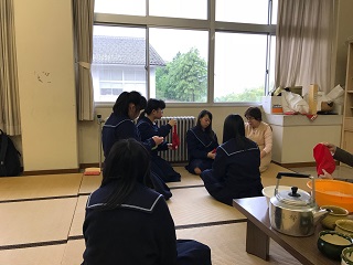 3年間お世話になった先輩3人に、2年生が心を込めて準備をし、お茶をたてました。