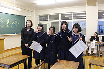 まだまだ未熟ですが、日頃の学びの成果を一生懸命披露しました。発表会後、北陸大学の留学生と交流活動をしました。若い世代の興味関心のある話題で会場は盛り上がっていました。