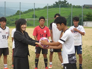 この日明治安田生命の方が来校し、ボールを寄贈していただきました。
