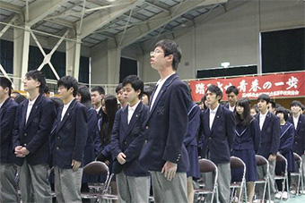 1月11日(土)、昨年同様、雪のない穏やかな陽気の中での実施となりました。3年生は、1週間後のセンター試験に向けてのセンタートレーニングに臨み、部活動所属(文化部は希望者)の1・2年生は永安寺へ初詣に訪れたのち、体育館で各部・生徒会の代表が新年の抱負を発表しました。その後、各部合同でのエアロビクス実技講習会(インストラクター指導による)で、いい汗を流すことができたので、皆、充実した表情でした。昼食は、PTAの方々が準備した食事(めった汁、おにぎり、ぜんざい、漬物)を堪能し、多くの生徒が満足していたようです。早朝から準備にご協力いただいた保護者の皆様、ありがとうございました。今後ともPTA活動へのご支援・ご協力をお願いいたします。