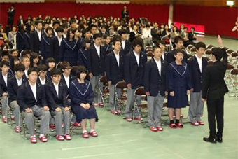 午後には入学式が挙行され、137名の1年生を迎えました。大勢の保護者の見守る中、一人ひとりが大きな希望期待を抱き、緊張の中にも清々しい表情で式に臨む新入生の姿が印象的でした。