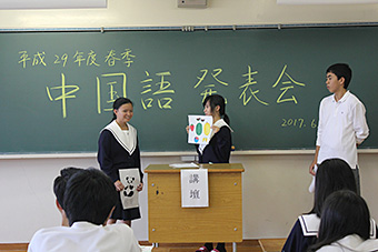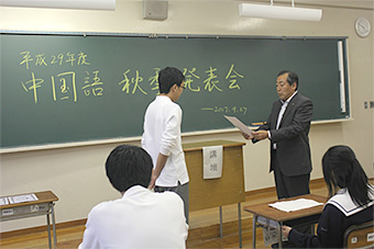 2年生グローバルコース中国語履修者及び中国語部員が、日頃の学びの成果を一生懸命披露しました。