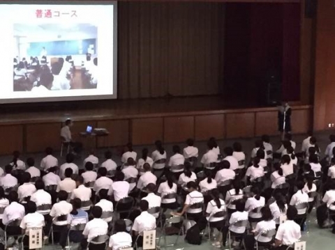 日本学生支援機構より講師をお招きし、奨学金や新たに導入される修学支援制度について講演していただきました。「奨学金は借金かもしれないが上級学校で学び、スキルアップするための自己投資である。」という言葉が印象的でした。