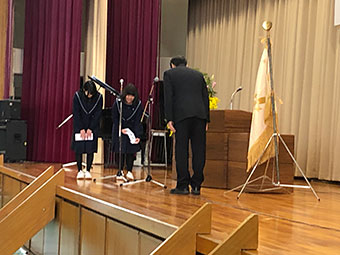 終業式では、学校長が、積み重ねることや、いろいろなことにチャレンジしてみることの大切さに触れ、新しい道を切り開く上でもこの夏休みを大切に、充実したものにして欲しいと語られました。