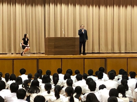 全体会(ウェルカムコンサート、生徒会長による学校説明)