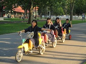 かるがもサイクル     記念モニュメントの前で