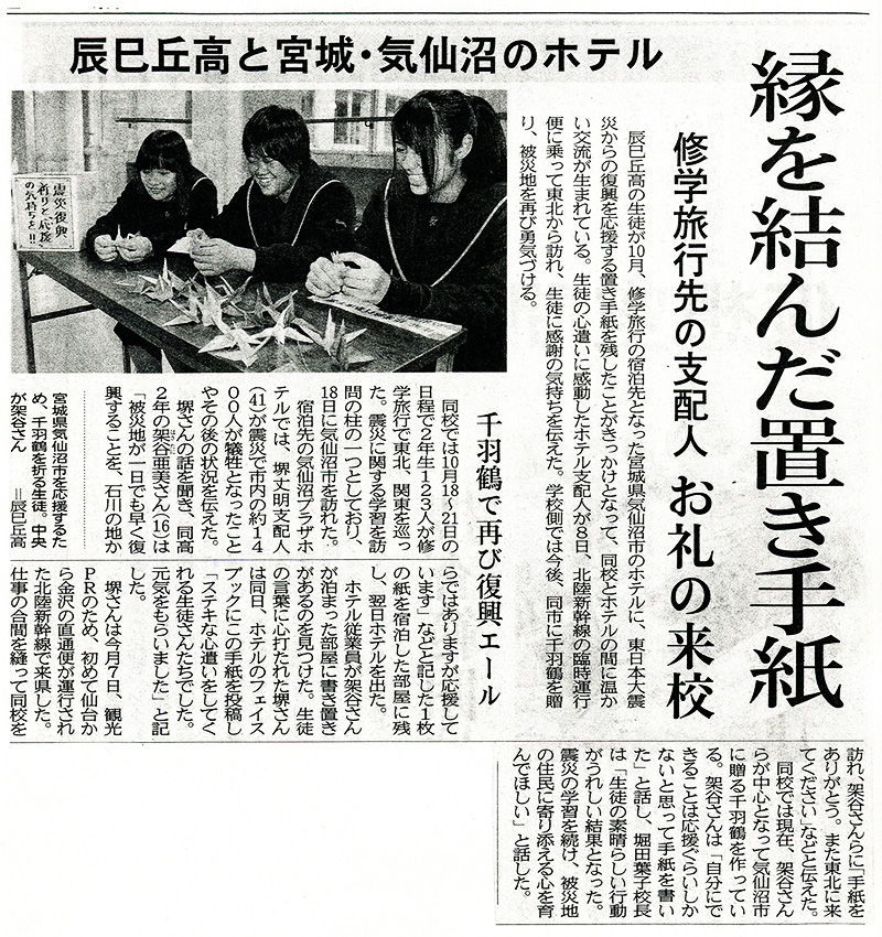 平成28年11月10日の北國新聞に本校の活動が紹介されました。