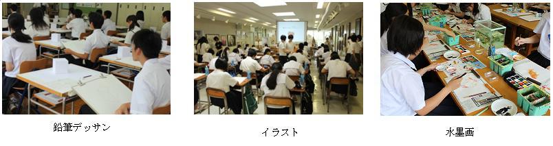今年度は、63名の中学生が鉛筆デッサン、イラスト、水墨画の実技体験をしました。