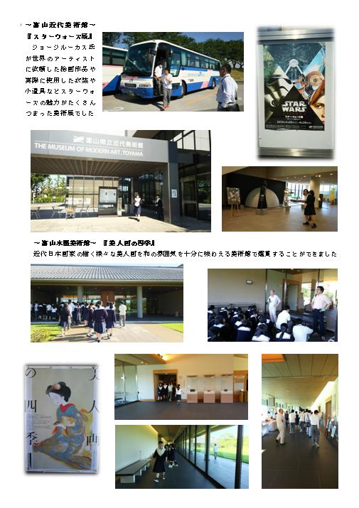 美術専攻生3学年そろって6月3日に石川県立美術館にて日展を、金沢21世紀美術館にて二紀展を鑑賞してきました。あくる日の4日は午後から、富山県立近代美術館でスターウォーズ展と富山県水墨美術館で美人画を鑑賞しました。