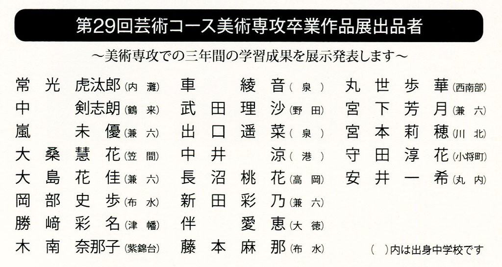 第29回芸術コース美術専攻卒業作品出品者
