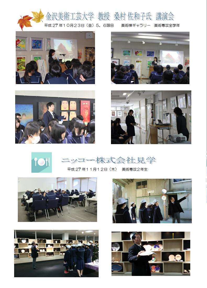 平成27年度ふるさとに学ぶクリエイティブ人材育成事業として地元の金沢美術工芸大学の講師による講演会及び地元企業のニッコー株式会社の見学を行いました。