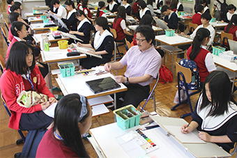 自分の描いた作品が目の前で喜ばれるという機会はとても貴重です。生徒にとって、美術に対する意識が一層高まった1日でした。