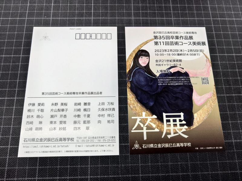 2月2日~5日に金沢21世紀美術館で開催される、第35回卒業作品展・第11回芸術コース美術展の案内はがきができ上がりました。