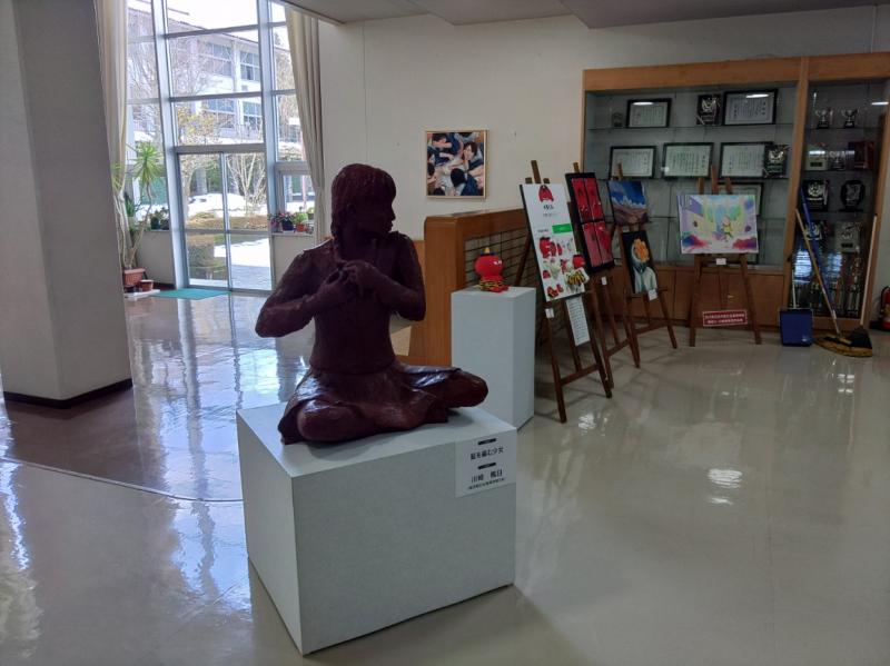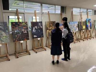 美術展で展示されていた作品が久しぶりに校内に戻ってきました。生徒たちが改めて一生懸命展示しています。