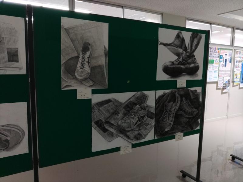 石川県高校総文美術展に出品した3年生の作品を校舎2階に展示しました。