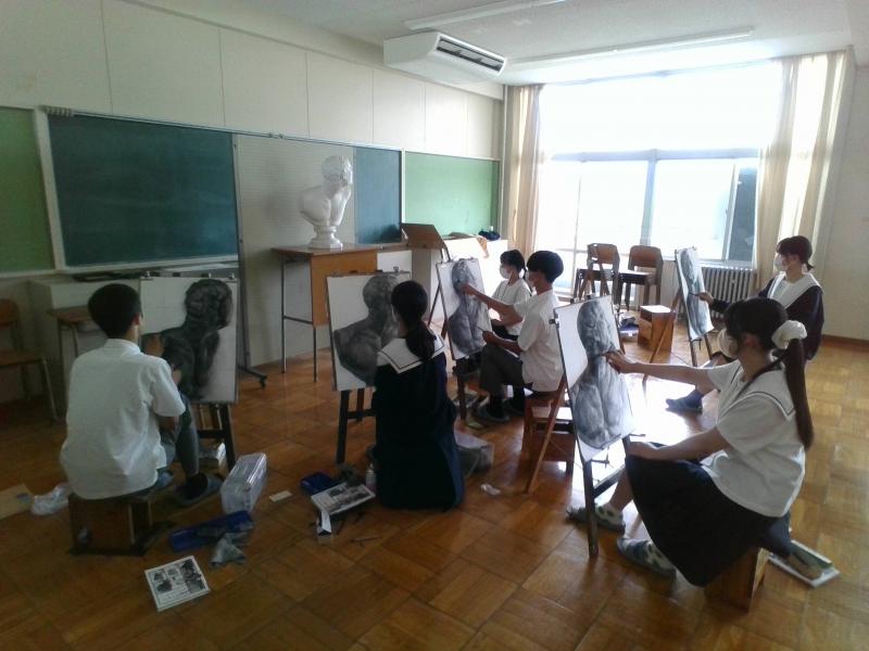 美術専攻では、1年~3年全員を対象として、主に土曜日に美術補習を行っています。このような活動により、基礎となるデッサン力や専門的な実技力はもちろん、粘り強く制作に取り組む姿勢や集中力を養っていきます。