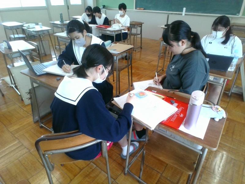 あいにくのお天気でしたが、生徒たちは一生懸命、楽しそうに描いていました。