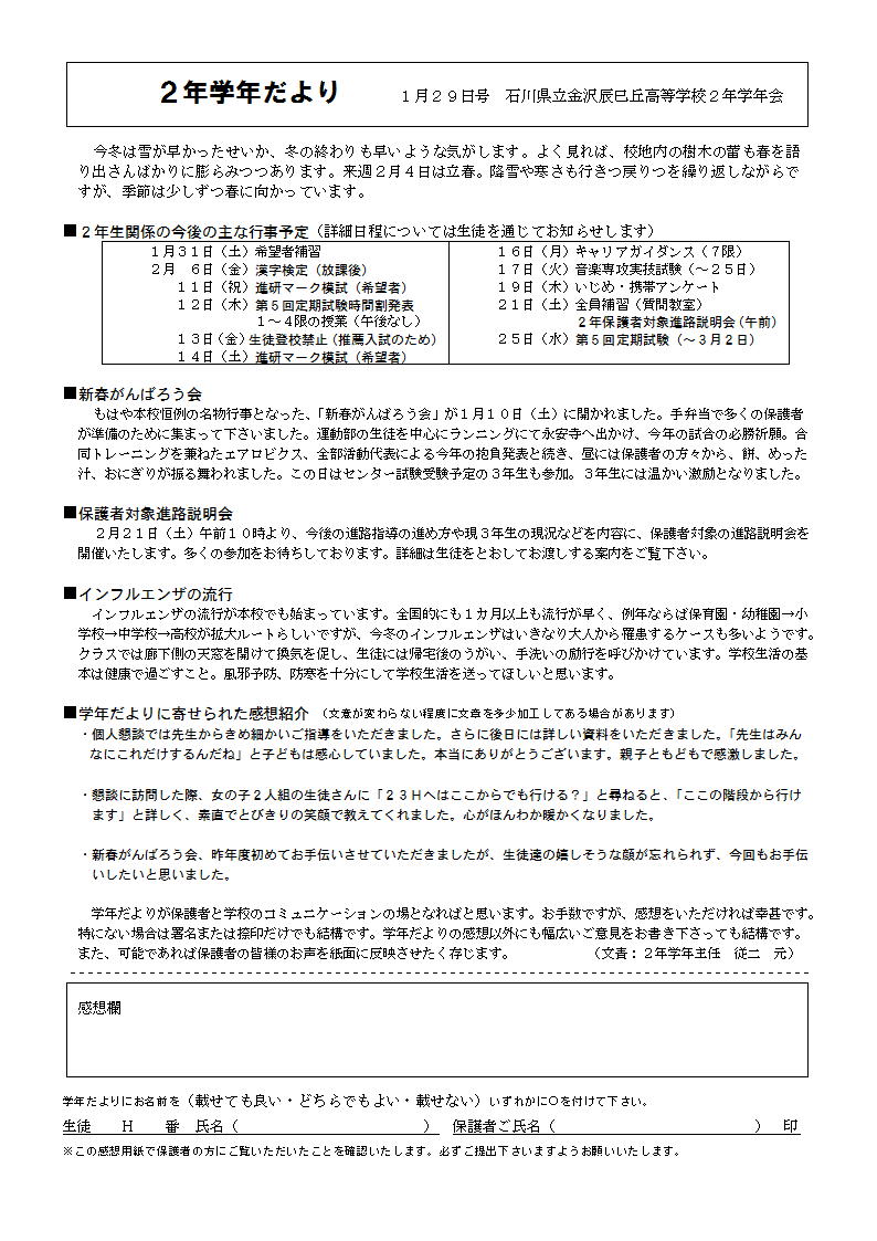 2年学年通信を発行しました。ぜひご覧ください。(R7.1.29)