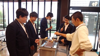 昼食は、月島にてもんじゃ焼きを体験。もんじゃ焼きが初体験の生徒もおり、本場での貴重な体験となりました。その後、浅草に移動しての散策でしたが、一部のクラスでもんじゃに時間がかかり、記念写真を撮っただけで浅草散策ができなったクラスもあり、とても残念でした。
