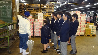 築地市場(青果)で説明を聞く