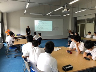 9月14日(月)7限に、本校アクティブラーニング教室で、北陸大学の福山先生による出前講座が行われ、2年生グローバルコースの生徒21名が5グループに分かれて講座を受けました。