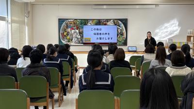 12月13日(土) 中学3年生を対象に「高校入学相談会」が行われました。事前に寄せられた中学生からの質問に答えるとともに、高校生活についても伝え、PTA会長からは保護者の声を直接届けていただきました。あわせて個別相談にも対応し、有意義な時間となりました。