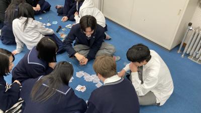 12月5日(木)、2年生は学年全体の親睦を深めるために学年行事を行いました。今回は、各クラスの会長と副会長が企画運営を行い、冬の季節にぴったりのカードゲームをすることに決めました。会場は想像以上に盛り上がり、初めて話す人ともすぐに打ち解け、笑顔で話していました。