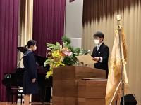 コロナ対策のため、保護者の方の参加について新入生1人について2人以内と制限せていただきました。また、例年ならば、音楽専攻生による国歌独唱、合唱部による学生歌の披露などもあるのですが、コロナ対策のため今年度はCDでの対応となりました。