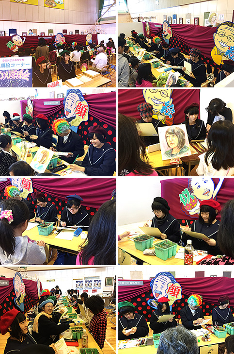 犀川公民館主催の行事「第38回犀川地区文化祭」にて、本校美術専攻生徒が似顔絵を描きました。