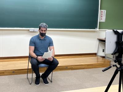 新任式では、外国語教育を中心としてご尽力いただくALTのマズ先生(Kyle J Racette)からメッセージをいただきました。
