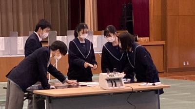 1月20日(木)7限目に「選挙出前講座」が行われました。実際の選挙の流れを楽しみながら体験することができました。よりよい社会づくりのために選挙の意義を考える良い機会となりました。石川県選挙管理委員ならびに金沢市選挙管理委員の方々、寒い中ご指導いただきありがとうございました。