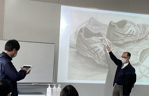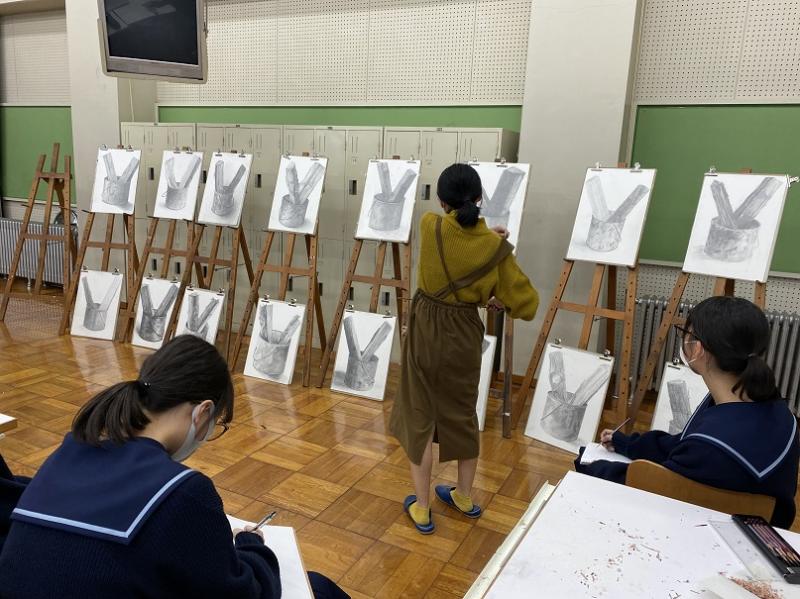 当日は、本校美術専攻1年生対象のデッサン指導も行っており、講習会終了後はその様子も見学しました。