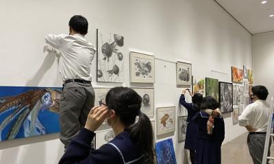 2年生と3年生がコースの垣根をこえて協力し、作品展示を行いました。