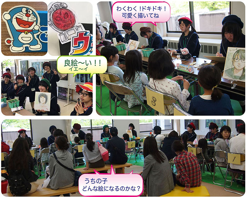 いしかわ子ども交流センター「わんぱくフェスティバル・春」にて美術専攻の生徒が来場者の似顔絵(色紙120枚)を描きました。