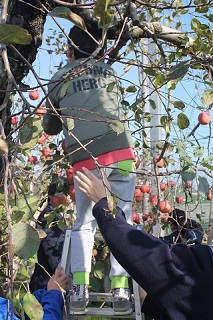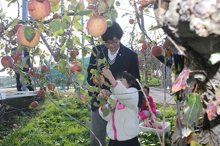 聾学校小学生とリンゴ収穫祭